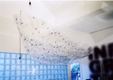 タイトル:「想奏 so-so-」<BUNBUN PROJECT> ーよりわかりやすい作者のコメント(制作意図のようなもの)ー 非日常のインスタレーション「仮設空間」は展示されると作者の思惑から解放されて、個々の鑑賞者の感性にゆだねられます。 引力に逆らってどこまでも飛んでゆける『想奏』という名の箱舟にふるってご搭乗ください。 オブセの空や光、窓の外につながるのびやかな空間をゆっくりと楽しんで頂ければ幸いです。 タイトルにはハイウエーミュージアムに寄せる皆の想を奏でるという意味を含めました。 お願い: ゆっくり座っって見てもらえる椅子を数脚置いていただければと思います。 素材:OHPシートにプリント 大きさ:4M20cm?90cm?1M20cm |
