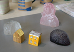 小品 Hiroko Ninomiya 二宮 裕子 少女トルソ(素材:パート・ド・ベール) ¥5,000 ペーパーウェイト透明(素材:パート・ド・ベール) ¥3,000 ペーパーウェイト透明(素材:パート・ド・ベール) ¥3,000 家(木彫:楠) ¥1,000 家(木彫:松) ¥1,000 作家データ